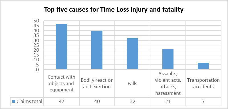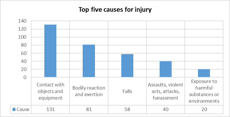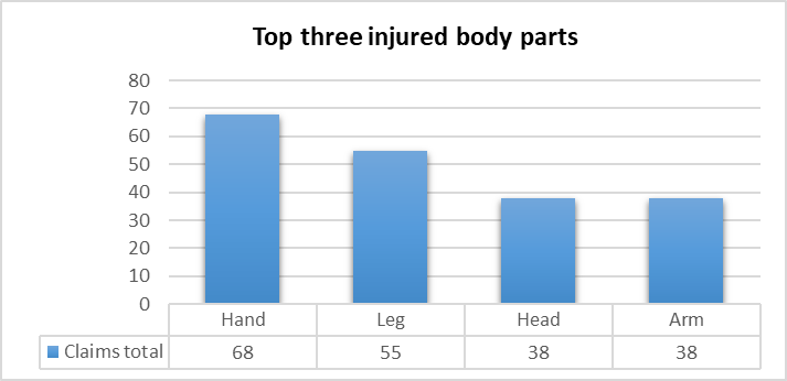 of these injuries are to hand. The most common of these injuries are due to struck by swinging or slipping object such as needles and syringes, and cutting hand tools – non-powered. |