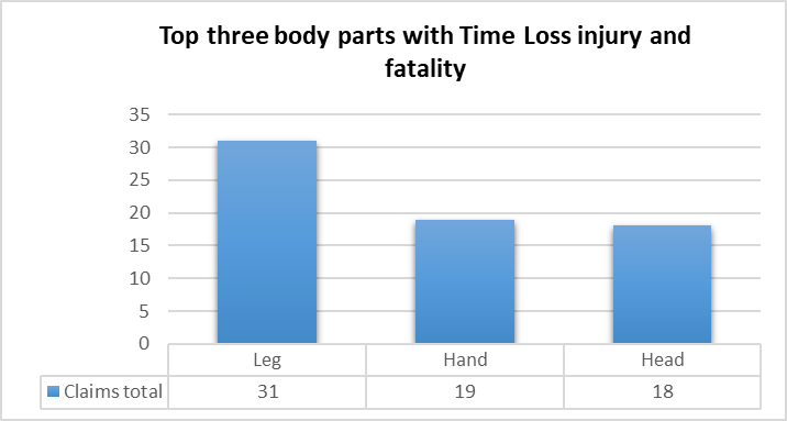 of these injuries are to leg. The most common of these injuries are due to struck by swinging or slipping object such as gates. |