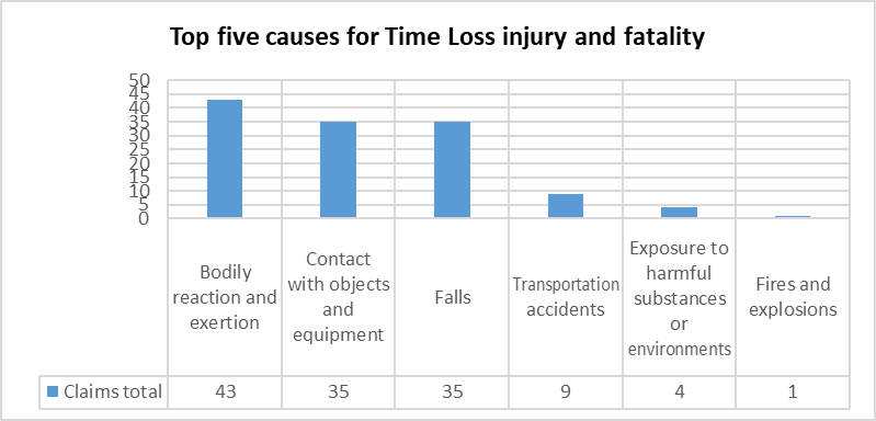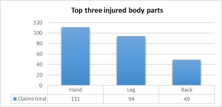 of these injuries are to hand. The most common of these injuries are due to struck by swinging or slipping object such as cutting hand tools – non-powered. |