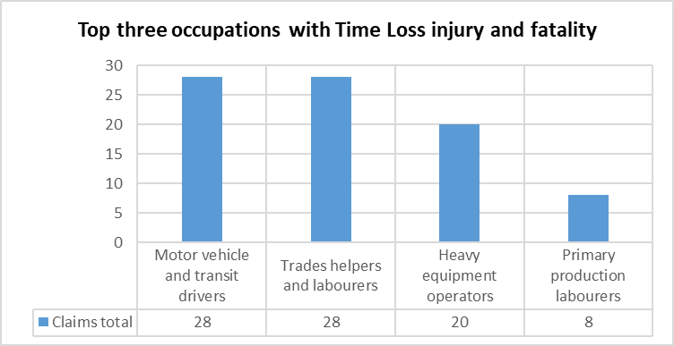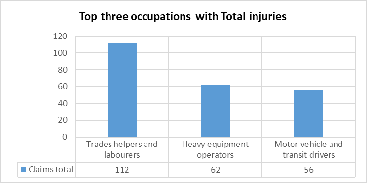 of these injuries are to head. The most common of these injuries are due to struck by object, n.e.c. such as pipes, ducts, tubing. |