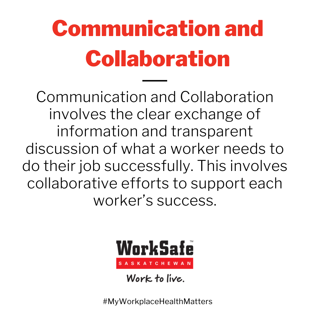 Communication and collaboration involves the clear exchange of information and transparent discussion of what a worker needs to do their job successfully. This involves collaborative efforts to support each worker’s success.