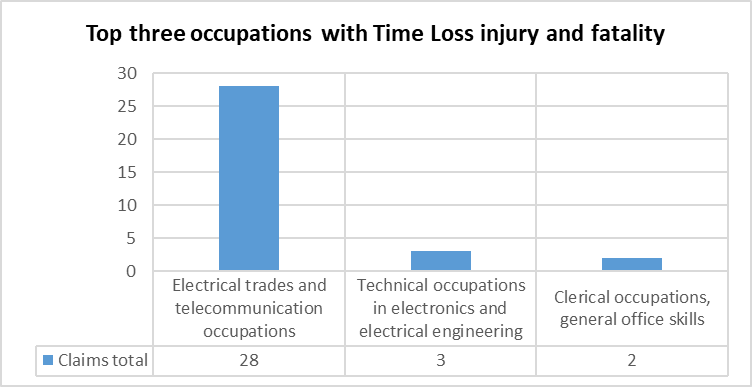 of these injuries are to head. The most common of these injuries are due to struck against stationary object such as roof, structural elements, n.e.c.. Other common injuries are due to struck by falling object such as cutting hand tools – non-powered, ropes, ties. |