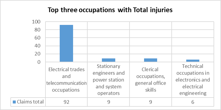 of these injuries are to arm. The most common of these injuries are due to bending, climbing, crawling, reaching, twisting such as bodily motion or position of injured, ill worker. Other common injuries are due to overexertion in carrying, turning, or wielding objects such as cutting hand tools – power not determined, electric parts. |